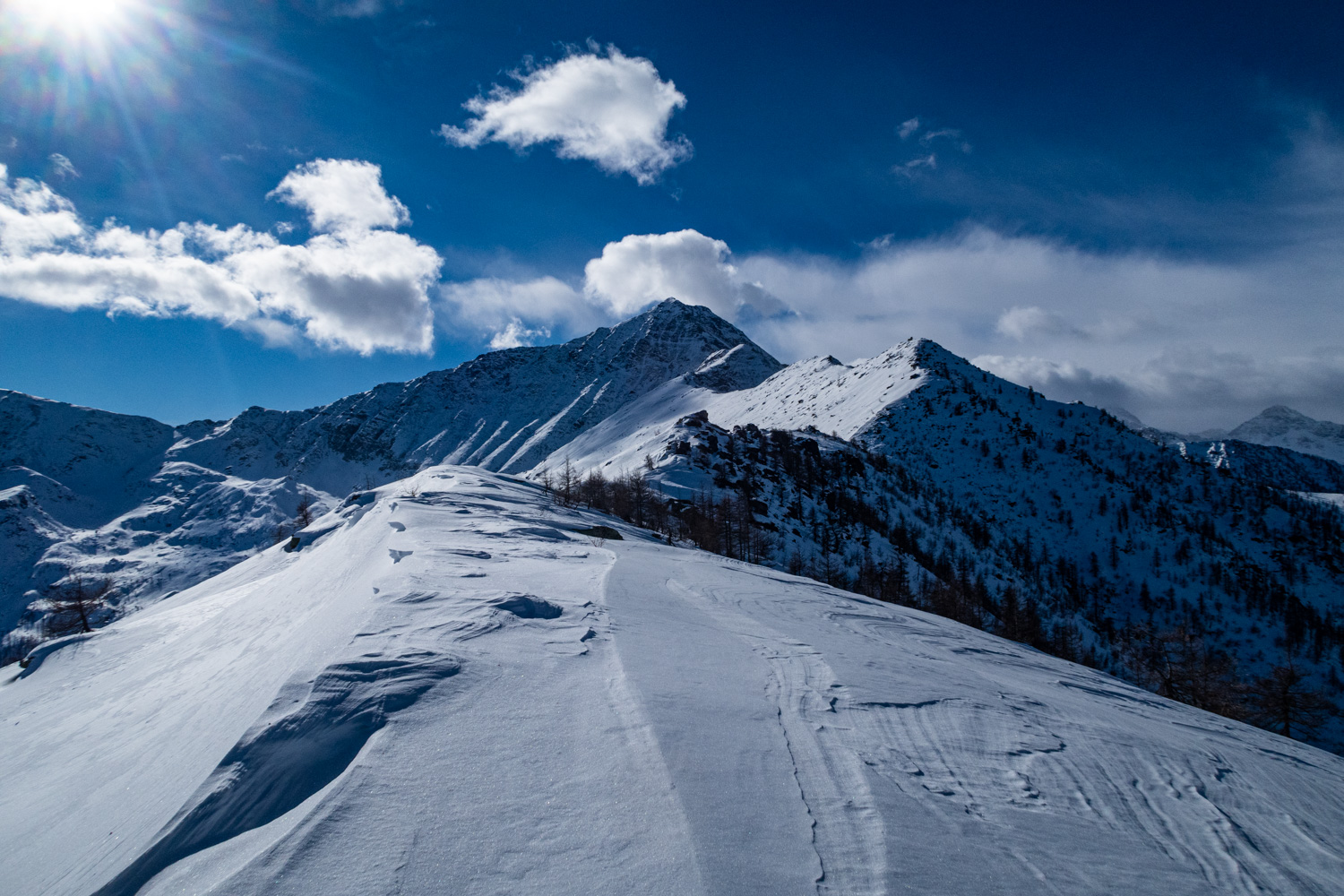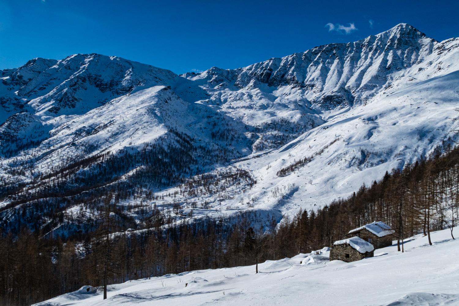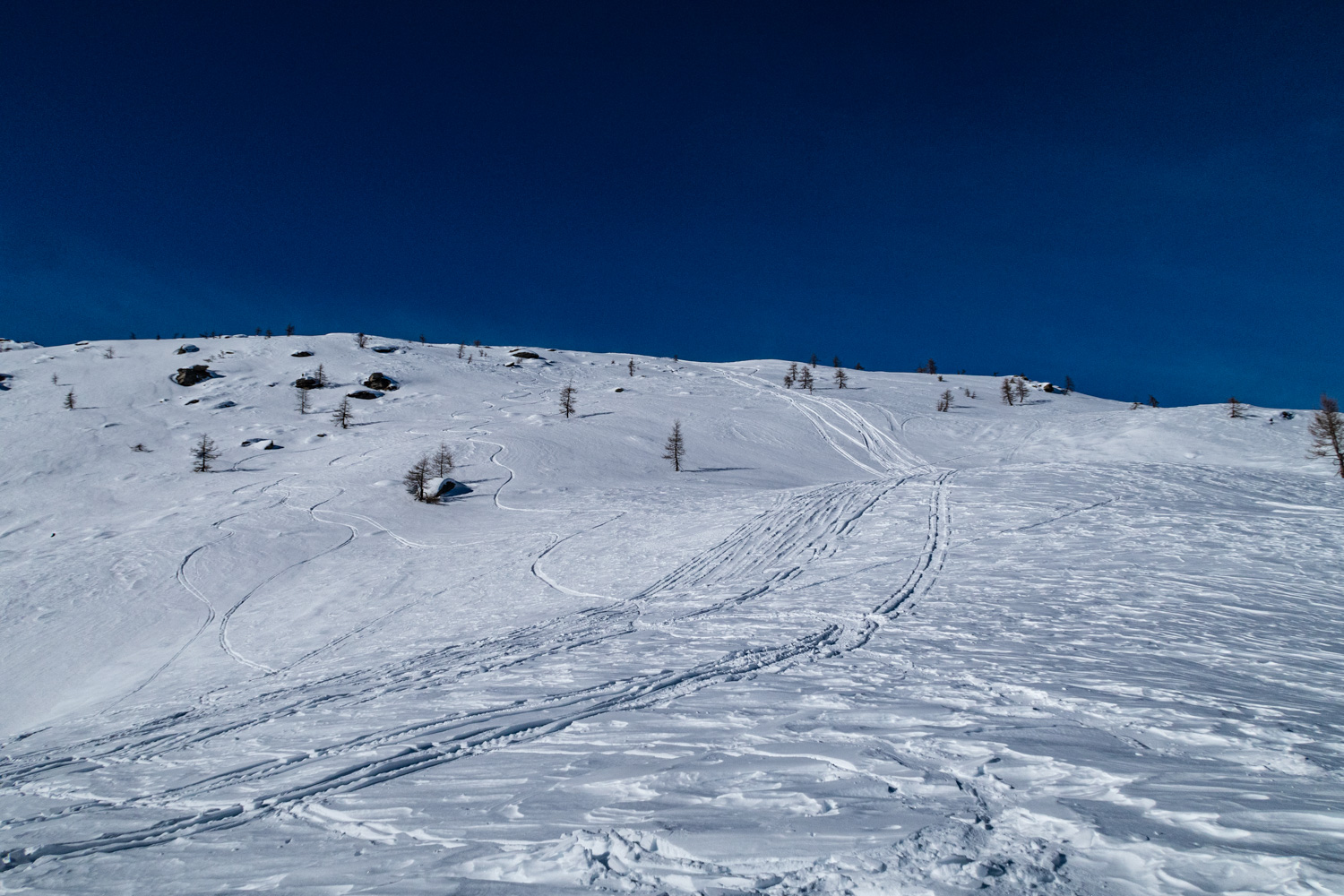 Da fare solo in condizioni di neve molto sicura, essendo un itinerario che attraversa dei pendii ripidi esposti ad est.
