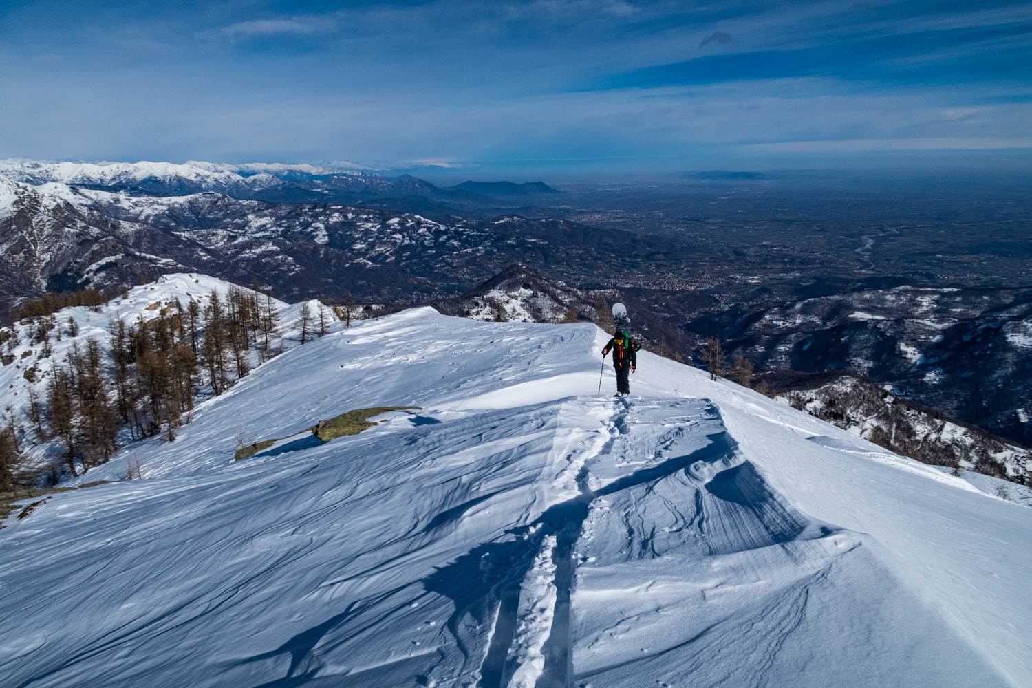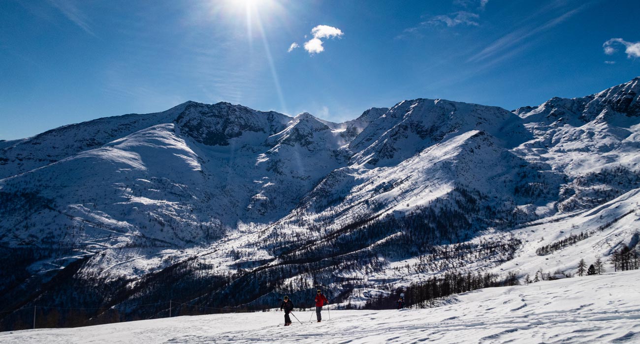 Dal rifugio si prosegue verso l’agriturismo la Palà da dove si sale per ampi pendii prendendo le pendenze più moderate fino alla cresta tra il Bric Valanza ed il Monte Cavallo.