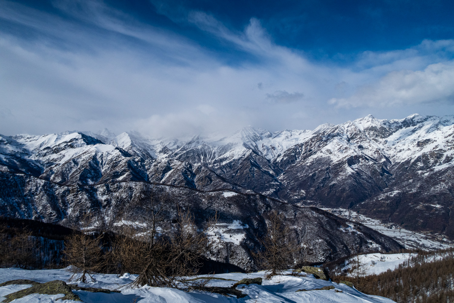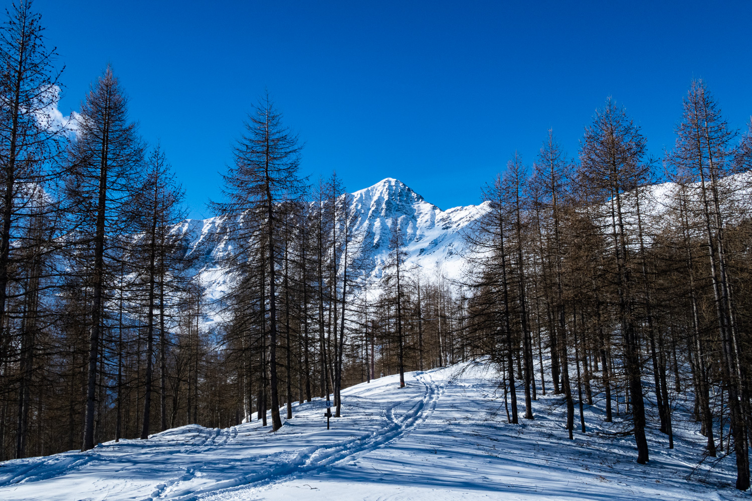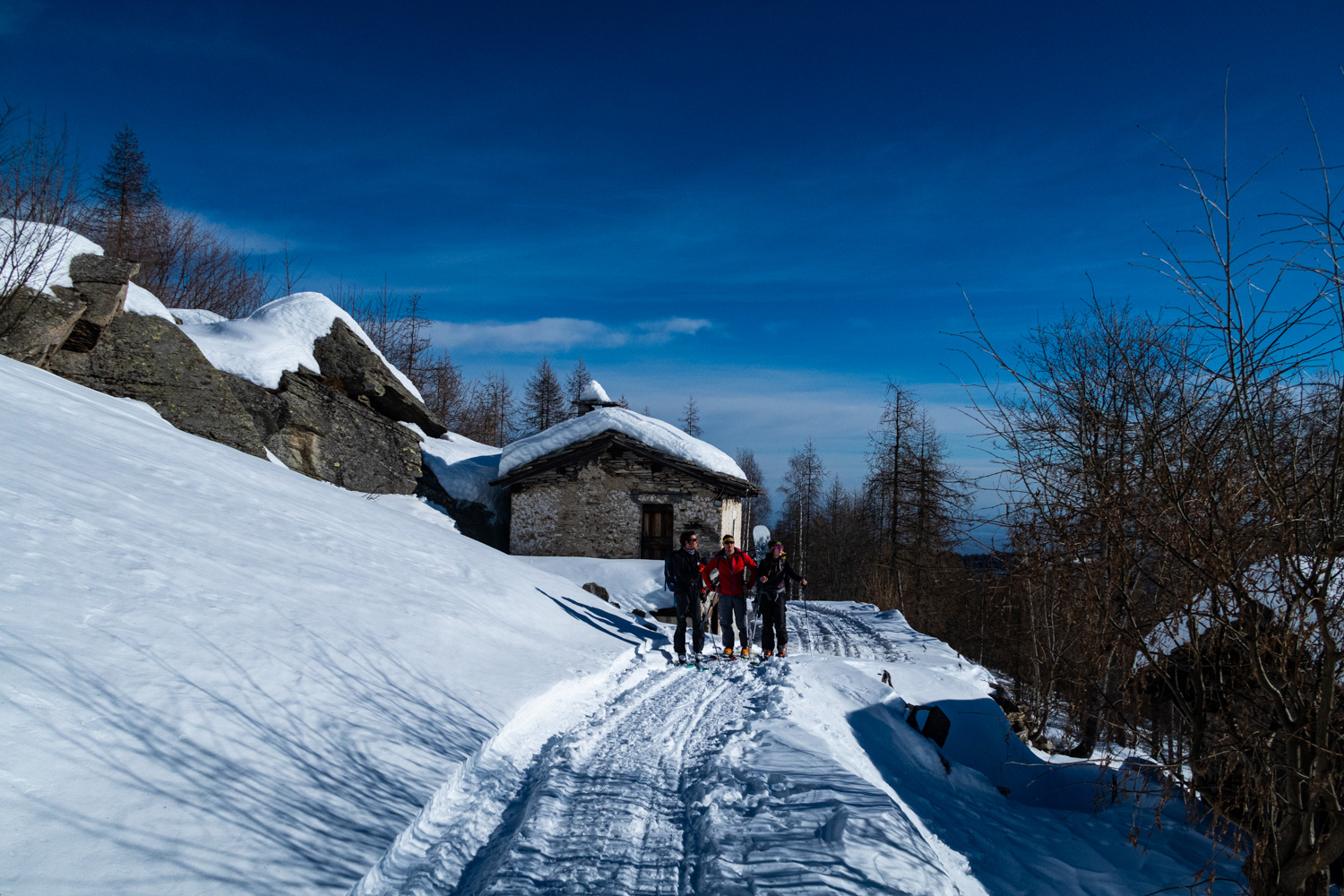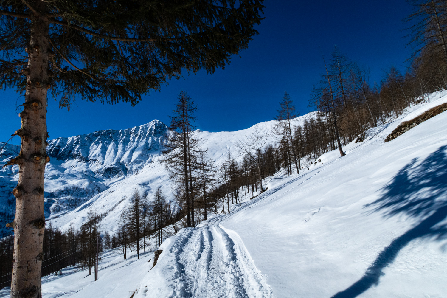 Dalle case del Ciavot della Vedova la strada è un saliscendi che attraversa in un paio di punti dei canaloni dove bisogna fare attenzione alle condizioni della neve (spesso svalangati).