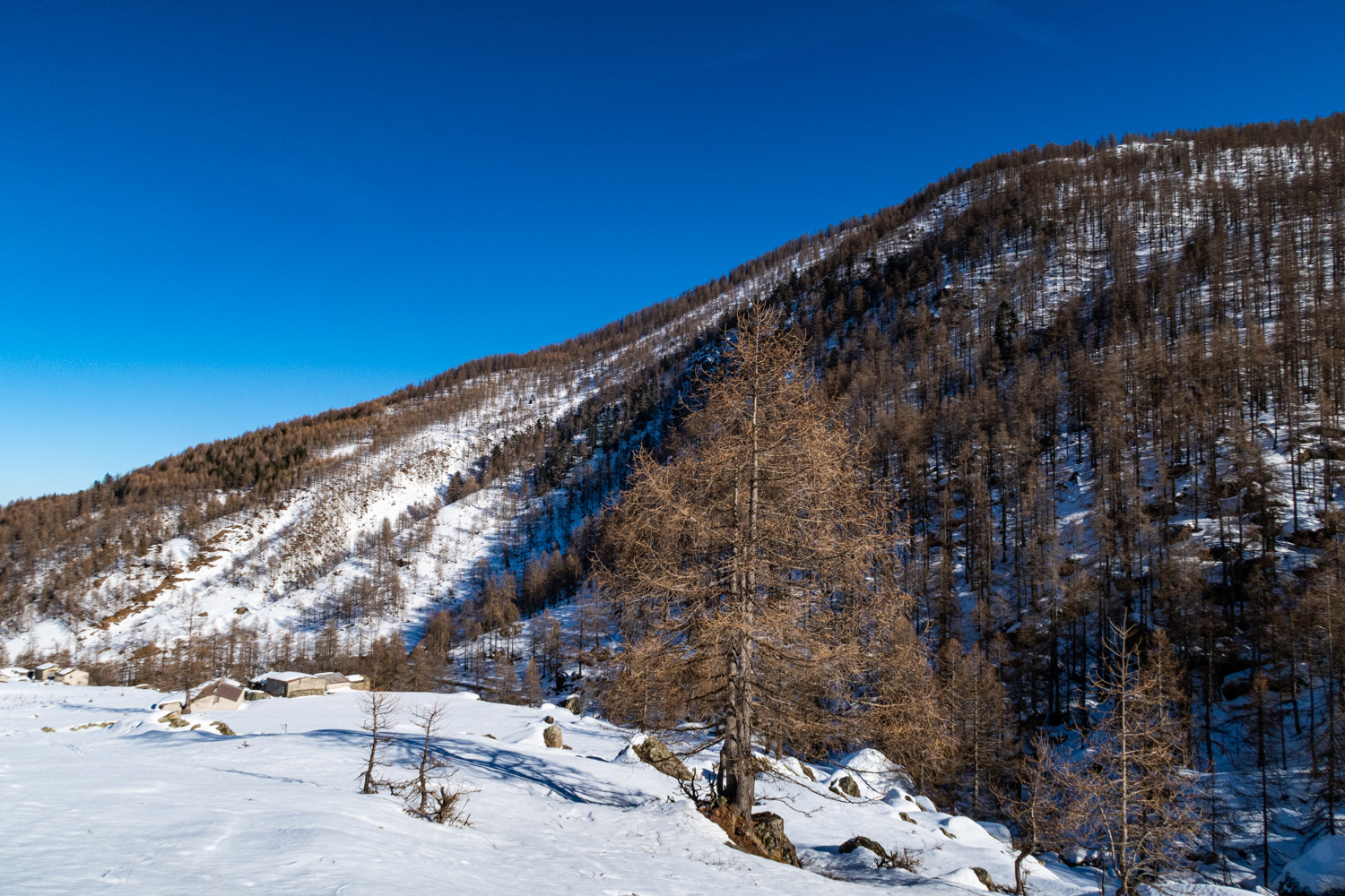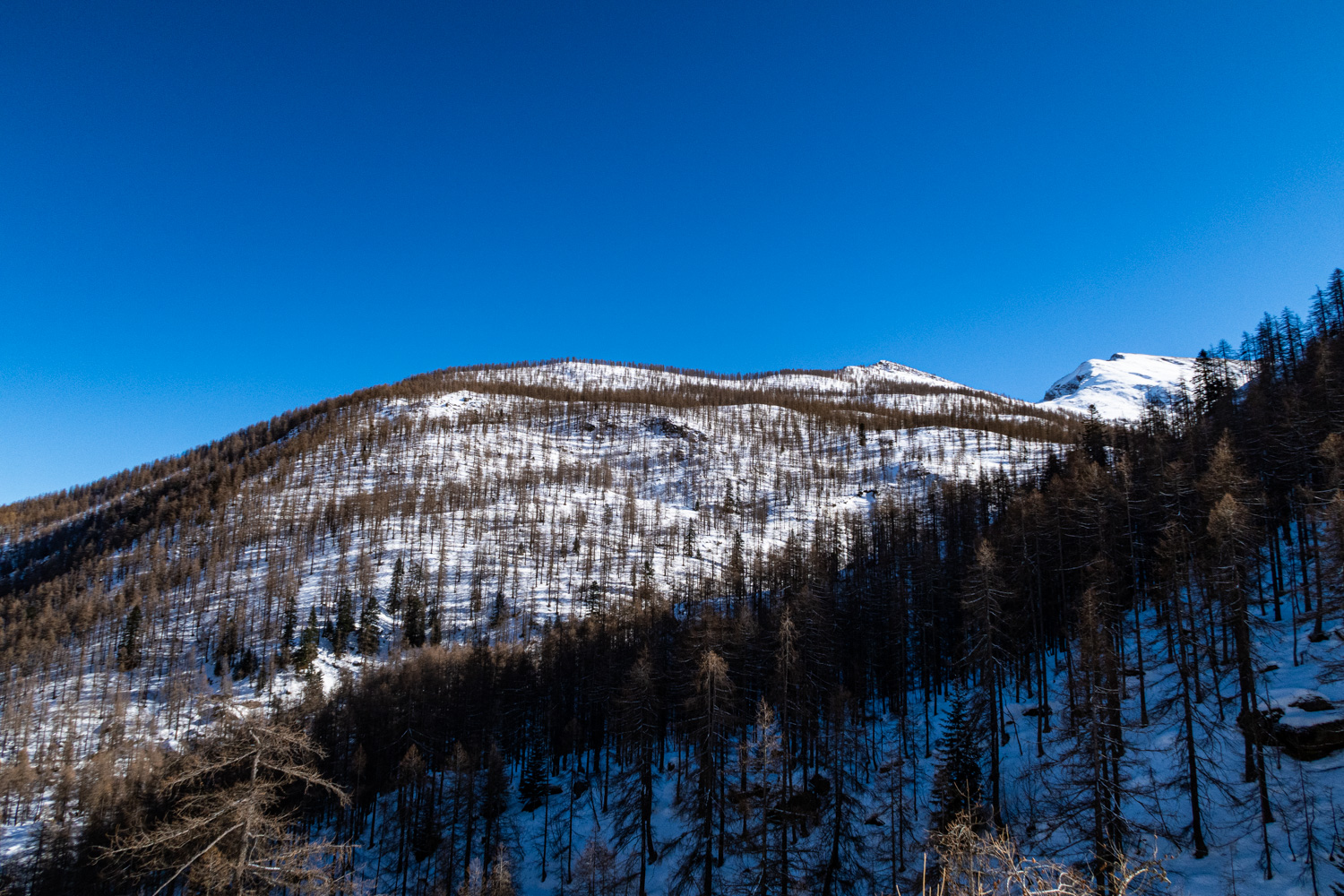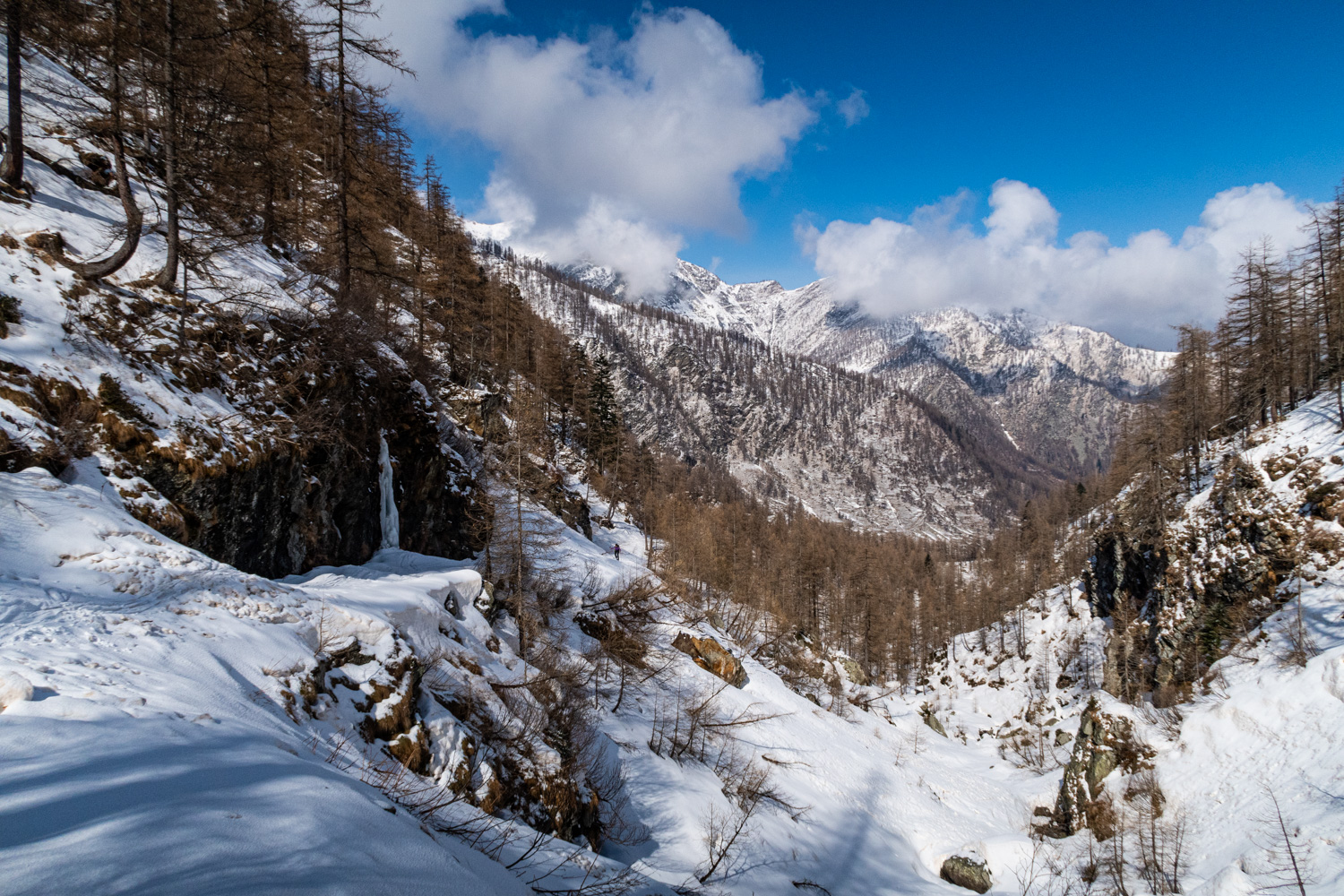Una bella e dolce punta con fantastico bosco di larici per esplorare senza salire troppo il vallone dei Carbonieri e della Gianna.