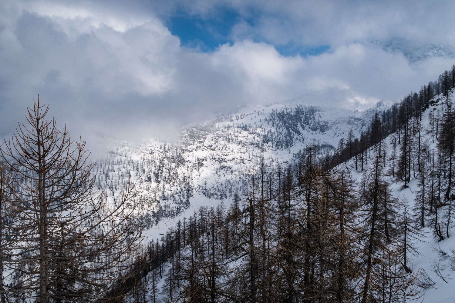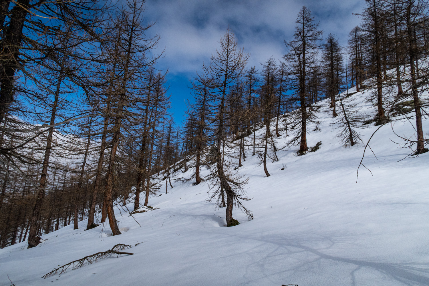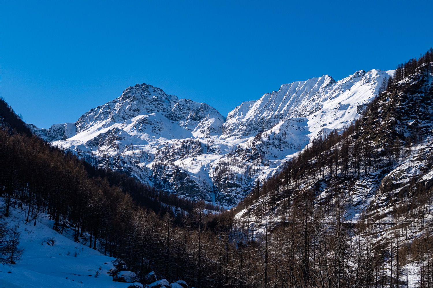 Una bella e dolce punta con fantastico bosco di larici per esplorare senza salire troppo il vallone dei Carbonieri e della Gianna.