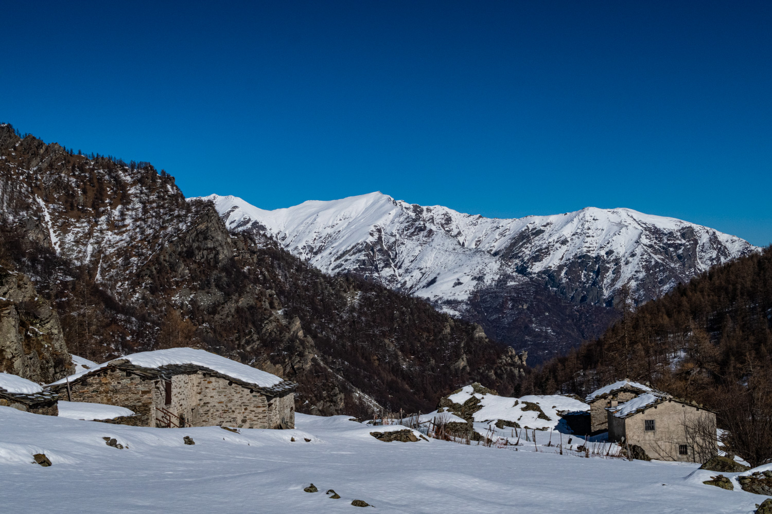 La strada prosegue senza grandi possibilità di tagli fino al ponte sotto le Grange della Gianna (prestare attenzione a pendii soprastanti perchè possono scaricare valanghe).